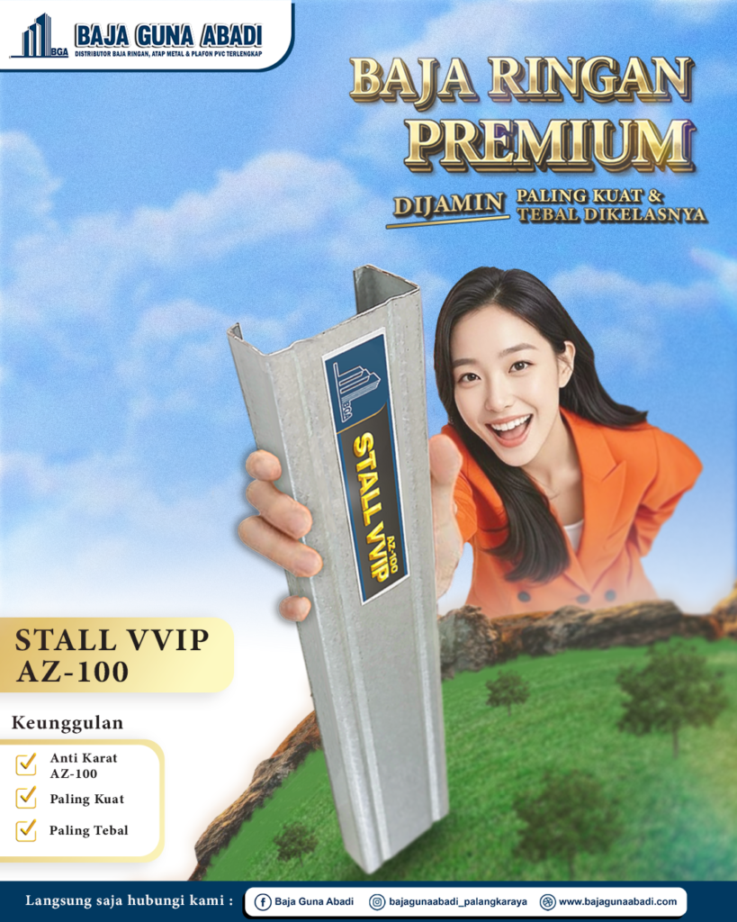 STALL VVIP AZ-100 hadir sebagai baja ringan premium yang menggabungkan kekuatan struktur dan ketahanan karat tingkat tinggi dalam satu produk unggulan.