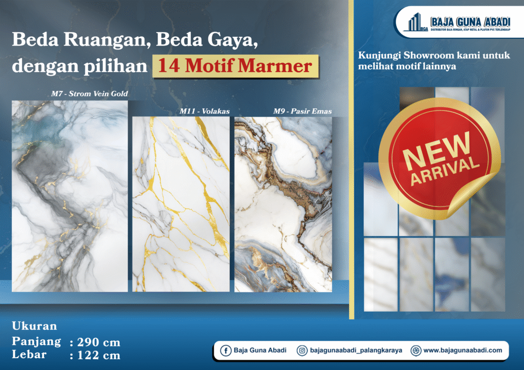 Ruangan yang keren selalu dimulai dari visual yang kuat. Dan salah satu cara paling efektif untuk ngangkat ambience ruang ke level premium adalah dengan material yang punya karakter kuat. Di sinilah Dinding Motif Marmer dari Baja Guna Abadi ngasih impact besar. Produk baru ini di-drop dengan 14 pilihan motif marmer yang tiap detailnya dirancang buat …